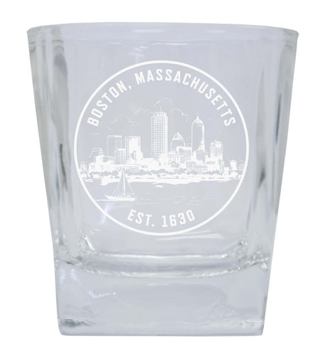 Boston Massachusetts Souvenir 8oz Engraved Whiskey Glass Rocks Glass